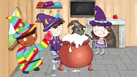 1. Escuchar y ver los videos varias veces para así poder comprender la historia y escribirla en 6 oraciones en inglés con el verbo to-be, acompañadas cada una con su respectivo dibujo.
